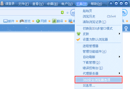360瀏覽器設(shè)置主頁(yè)的方法: 1)首先,打開(kāi)瀏覽器上部菜單欄的“工具”欄,在下拉列表中選擇“360安全瀏覽器選項(xiàng)”,如下圖所示:
