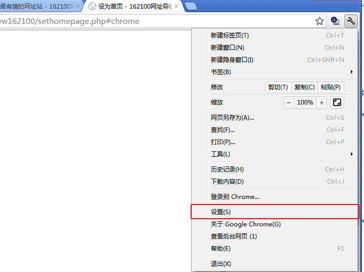 Chrome瀏覽器設(shè)置主頁(yè)的方法: 1)首先,點(diǎn)擊瀏覽器上右側(cè)“扳手”按鈕,在下拉列表中選擇“選項(xiàng)”,如下圖所示: