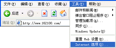 方法二:設(shè)置瀏覽器的“主頁(yè)”選項(xiàng) 首先,打開(kāi)瀏覽器上部菜單欄的“工具”欄,在下拉列表中選擇“Internet 選項(xiàng)”,如下圖所示: