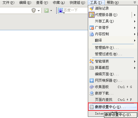 傲游瀏覽器設(shè)置主頁(yè)的方法: 1)首先,打開(kāi)瀏覽器上部菜單欄的“工具”欄,在下拉列表中選擇“傲游設(shè)置中心”,如下圖所示:
