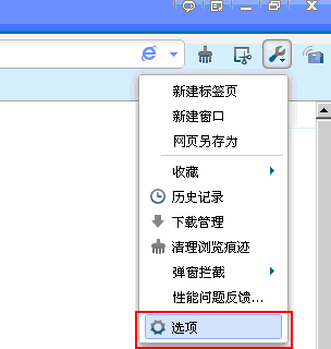 360極速瀏覽器設(shè)置主頁(yè)的方法: 1)首先,點(diǎn)擊右上角的“設(shè)置”按鈕,在下拉列表中選擇"選項(xiàng)",如下圖所示: