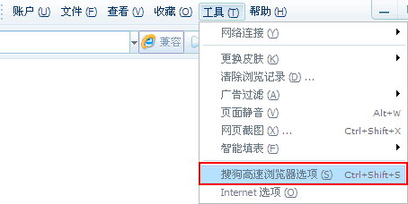 搜狗瀏覽器設(shè)置主頁(yè)的方法: 1)首先,打開(kāi)瀏覽器上部菜單欄的“工具”欄,在下拉列表中選擇“搜狗瀏覽器選項(xiàng)”,如下圖所示: