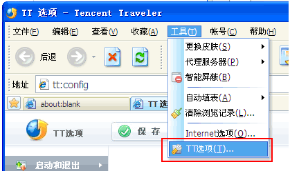 騰訊TT瀏覽器設(shè)置主頁(yè)的方法: 1)首先,打開(kāi)瀏覽器上部菜單欄的“工具”欄,在下拉列表中選擇“TT選項(xiàng)”,如下圖所示:
